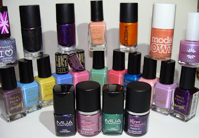 Barry M: Dusky Mauve, Blueberry Ice Cream, Lemon Ice Cream, Nail Effects (crackle) Blue Print and Pink Fizz