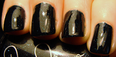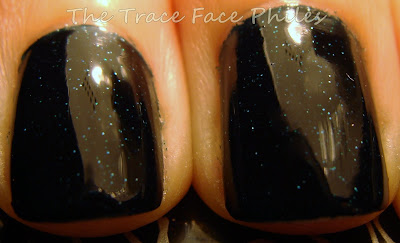 This is my first time using this polish. Living Water looks black from afar, but its really a deep dark blue. It has teeny silver and teal bits of glitter. I found this polish to be a "hungry glitter", although its not really what I would consider a glitter polish! So I decided to add a layer of Gelous before applying CND Air Dry top coat.