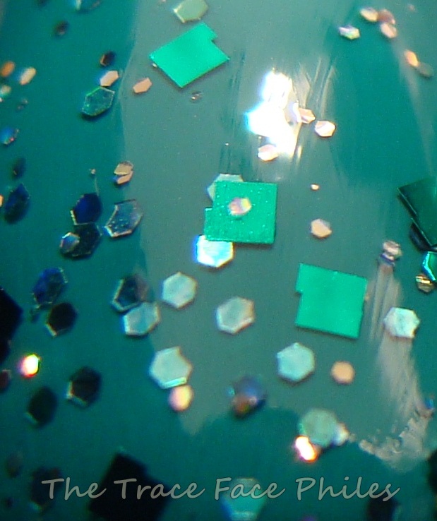 Edward is the glitter topper of the set. I was surprised how thick this polish applied. It is packed with two different sizes of glitter in square and hexagon shapes. The colors of the glitter are green, blue and holographic. I only needed one coat of this to look even and well covered. I applied a layer of Gelous before adding Orly Sec N' Dry top coat.